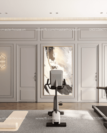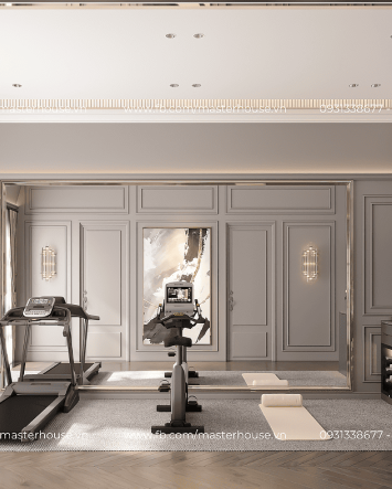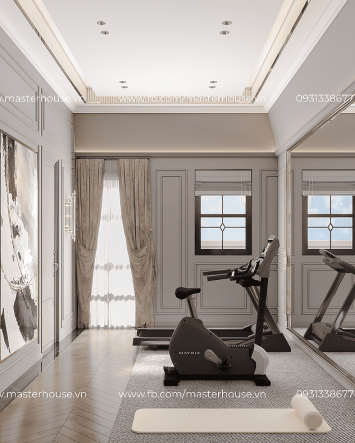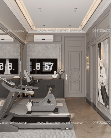 Ngoài ra, ngôi nhà còn có phòng làm việc, phòng giải trí, với hệ thống âm thanh và ánh sáng hiện đại, phòng tập gym,... được thiết kế hiện đại và tiện nghi, đáp ứng mọi nhu cầu của gia chủ.