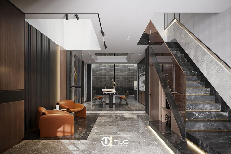 Ánh sáng tự nhiên: Tận dụng tối đa cửa kính lớn, giếng trời để không gian luôn sáng sủa và thoáng đãng.